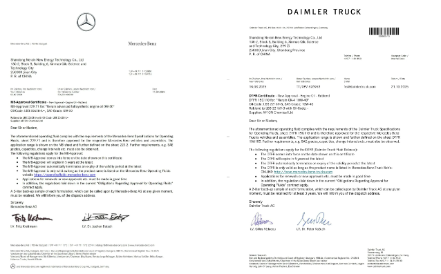 卓越品质,需经权威检验。耐润润滑油通过欧洲汽车制造商协会ACEA、国际润滑油标准及认证委员会ILSAC等多项国际权威认证,更斩获德国奔驰原厂MB229.71/MB229.51认证、戴姆勒奔驰重卡15C110认证、IATF16949质量管理体系认证、ISO9001质量管理体系认证、ISO14001环境管理体系认证。每一项认证与荣誉,都是对耐润产品品质的高度认可,让消费者使用更安心。